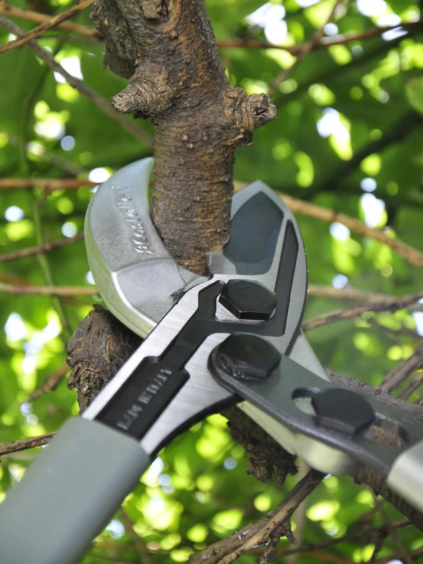 These will quickly become your favorite loppers! Large jaw openings allow for bigger, more substantial cuts. Designed to reduce kickback and thus fatigue in arms and shoulders, they’re also ultra lightweight so you can accomplish intensive pruning work without the stress normally associated. The curved counter-blade holds branches firmly during the cut and the “hollow on the blade” reduces friction and further ensures that the cut is smooth (better for the plant and you!).