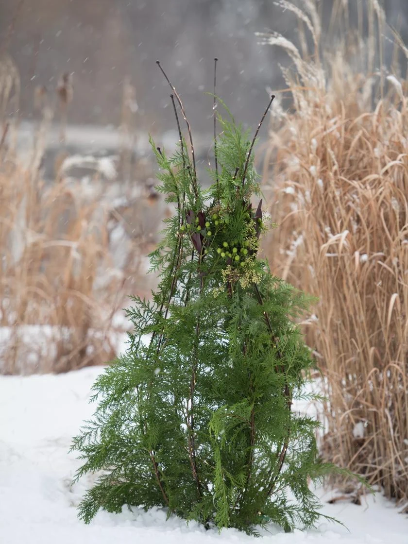 - Unique support for vining plants adds a structural element to planters