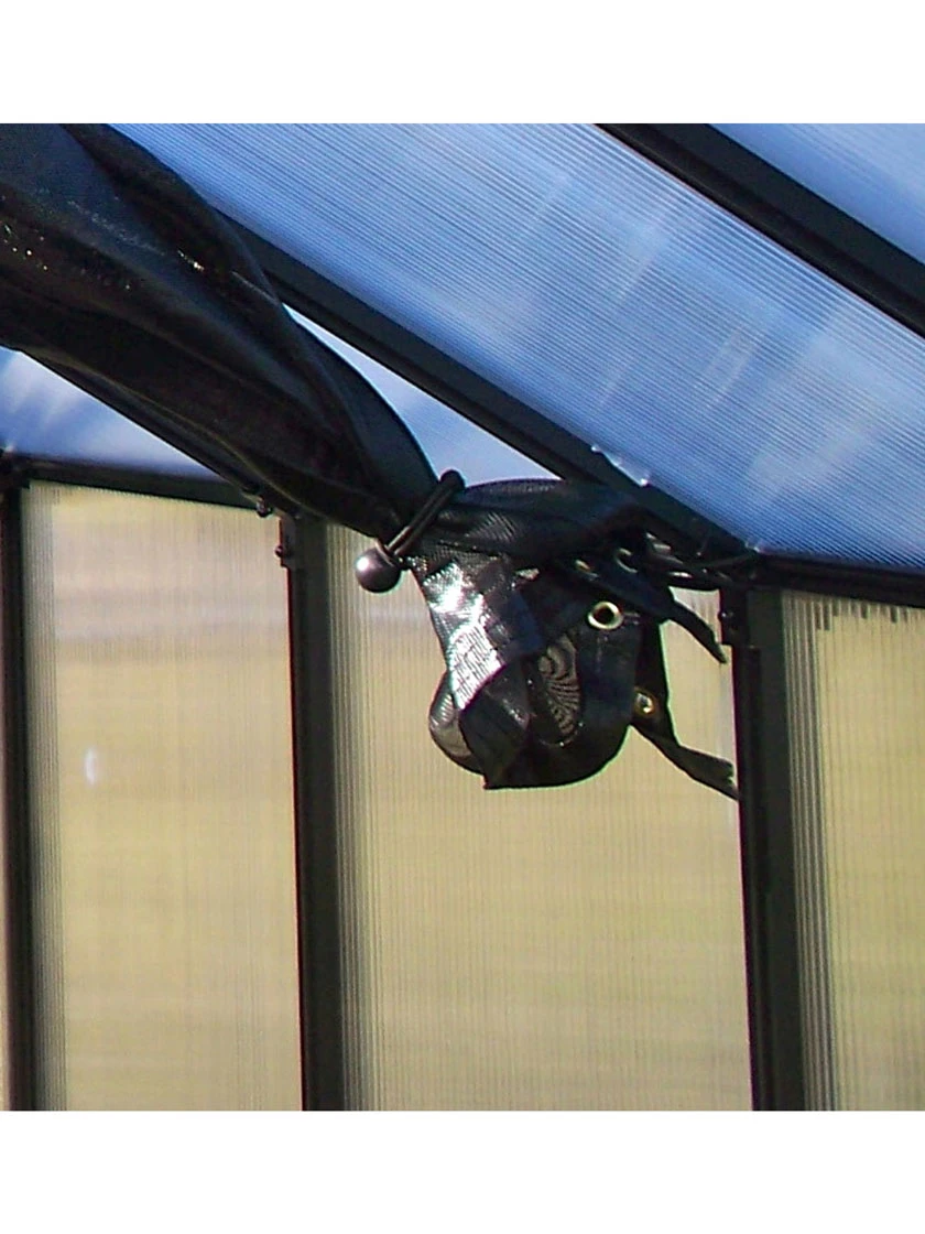 The Monticello 8 foot Shade Cloth Kit is specifically designed for the Monticello line of 8FT greenhouses. The design is simple, unique and thoughtful. Most shade cloths go on the outside of the greenhouse, interfering with roof vent and side window functioning. They are bulky and not easy to set up or take down. The Monticello Shade Cloth kit comes ready to use, no grommet installation needed. The commercial grade shade cloth (rated at 63%) works off a specially designed commercial grade wire system guaranteed to last for 7 years. The shade cloth comes in 4 foot sections so it will work with our Automatic Watering system and since the shade cloth is on the inside, it will not interfere with the Monticello Automatic Vent openers allowing fresh air to flow in and out unimpeded. To operate the Shade Cloth System is as easy as pulling the cloth back to open or pulling tight to the other side to close. Just like our greenhouses, the Monticello Shade Cloth is proudly made in the USA from start to finish.